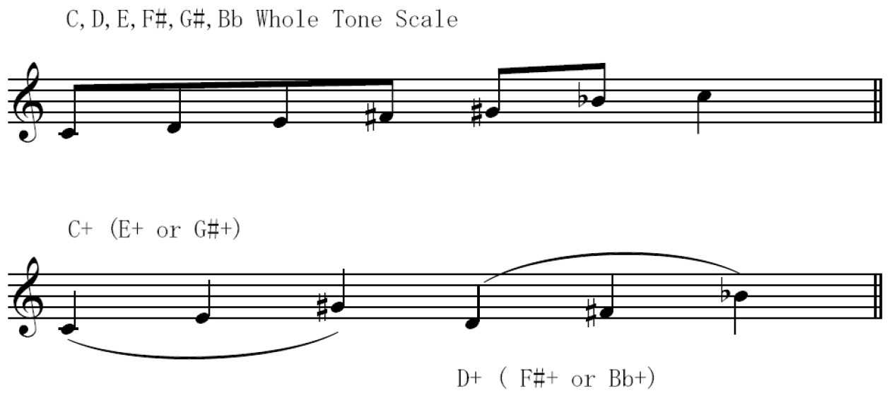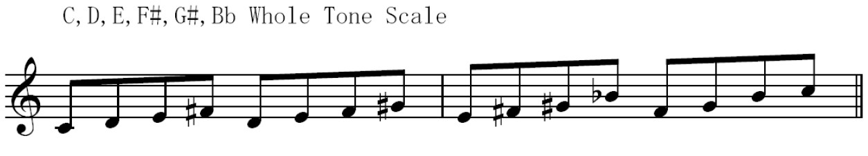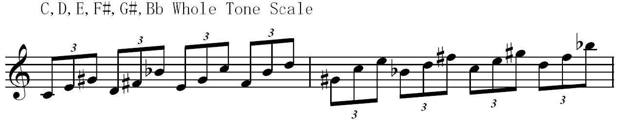 その名の通り全音のみからなるスケールで、その対称性から2種類しかありません。