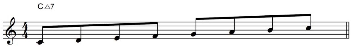 例)キーがCメジャーでCmaj7の時にはCメジャースケールを使います。