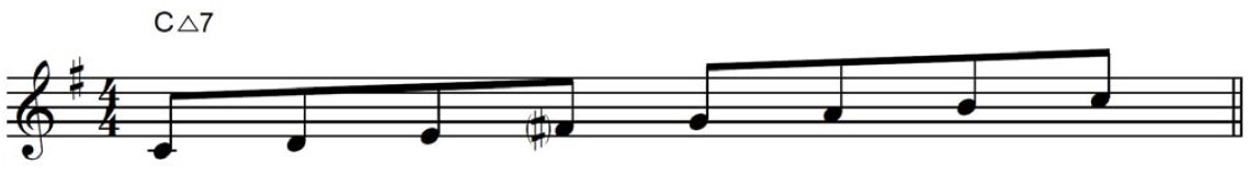 つまり、メジャーコードはⅠmaj7なのかⅣmaj7をはじめとするそれ以外なのかによって、スケールの4番めの音使いが異なります。