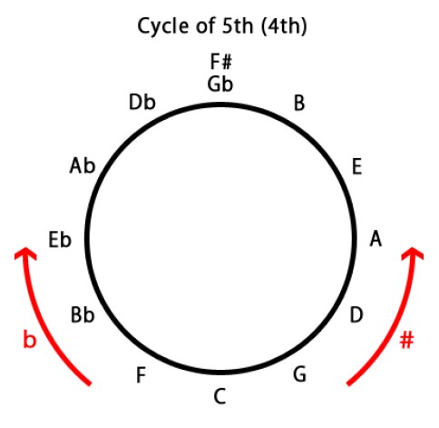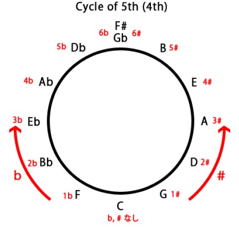 覚えること① C→F→Bb→Eb→Ab→Db→Gb (左回り:フラット)