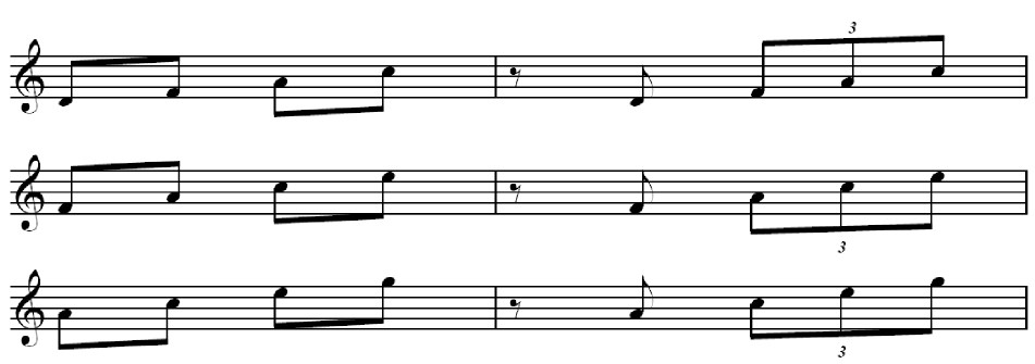 まず、ビバップでよく見られる”分散和音的な動き=縦の動き”を練習しましょう。