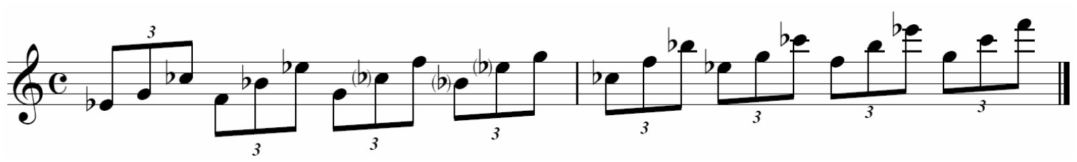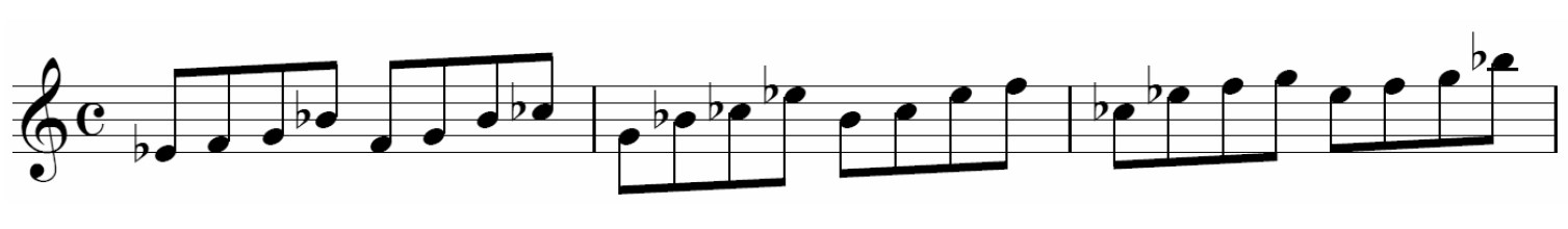 Ex1にあるように、Cメジャーb6ペンタトニックなら、CDEGAbという音の並びになります。