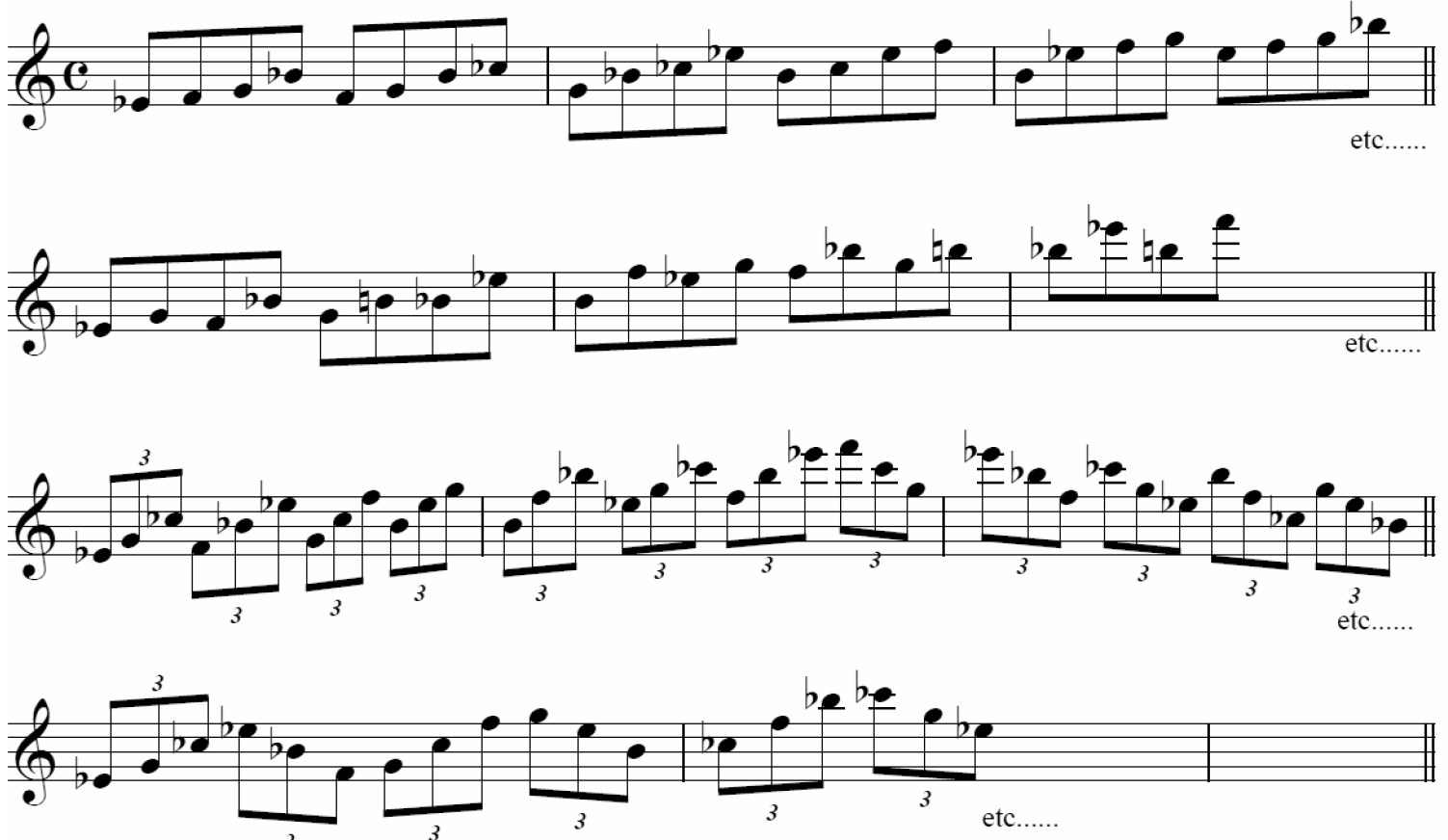アドリブではこのまま吹いてもいいですが、ブレッカーのようなリズムをつけてみましょう。